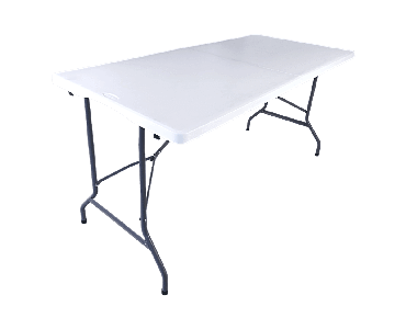 Once the plastic table is folded, it turns into a portable suitcase that is easy to carry. The steel legs are hidden inside the suitcase.