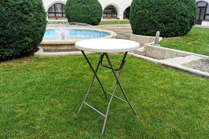 As we mentioned, the folding bistro table should not be missing from any formal or informal event. It elevates any space. Its use is versatile, even in winter. The table’s properties are not damaged by sub-zero temperatures. These tables are very popular at Christmas markets where visitors can enjoy traditional food. It serves as a place to consume food and drinks, but also to offer toasts. The table’s elegant design fits into any concept.