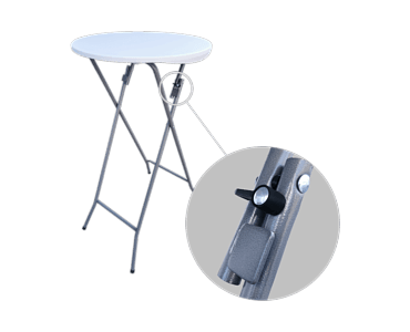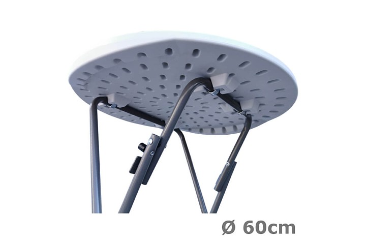 The foldable plastic bar table with a round top of 80cm / 60cm is made from very strong non-yellowing HDPE plastic. The key advantages of this folding bar table are its seconds-fast setup, great strength, and stability.