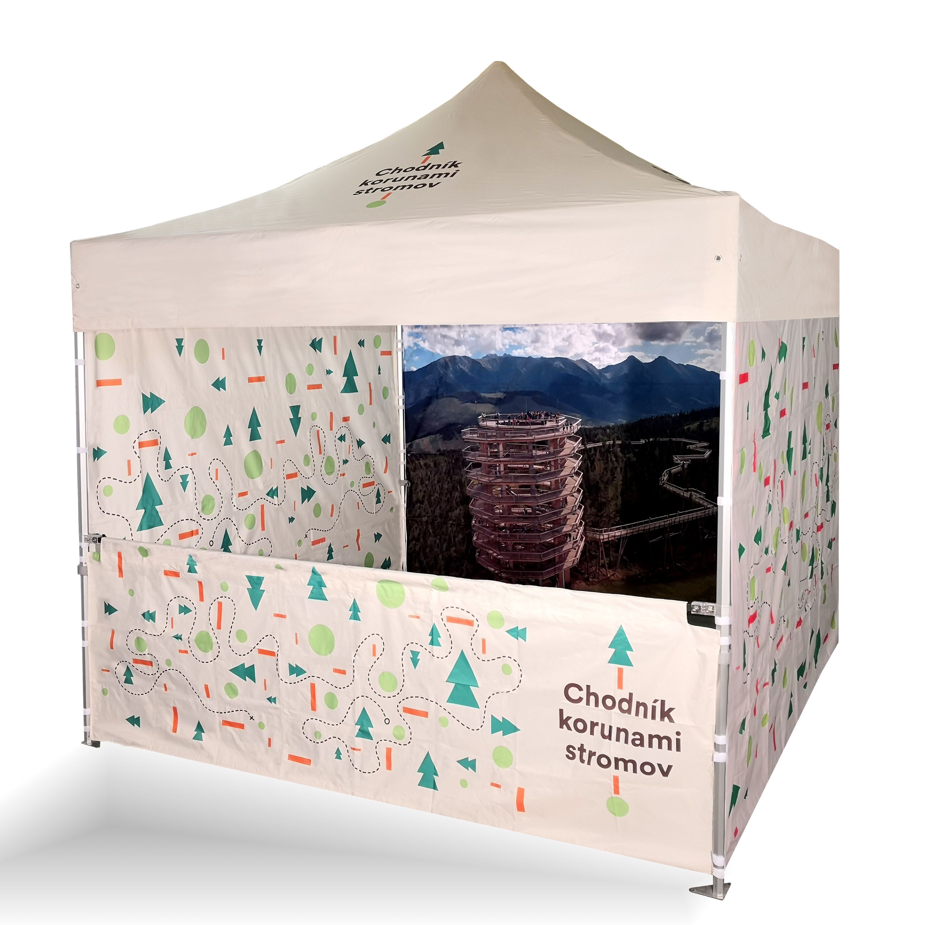 Whether it's a small 2x2 m tent or a large 4x8 m advertising tent, we print colorful images, graphic elements, or cover the entire surface of the advertising tent with the chosen design.