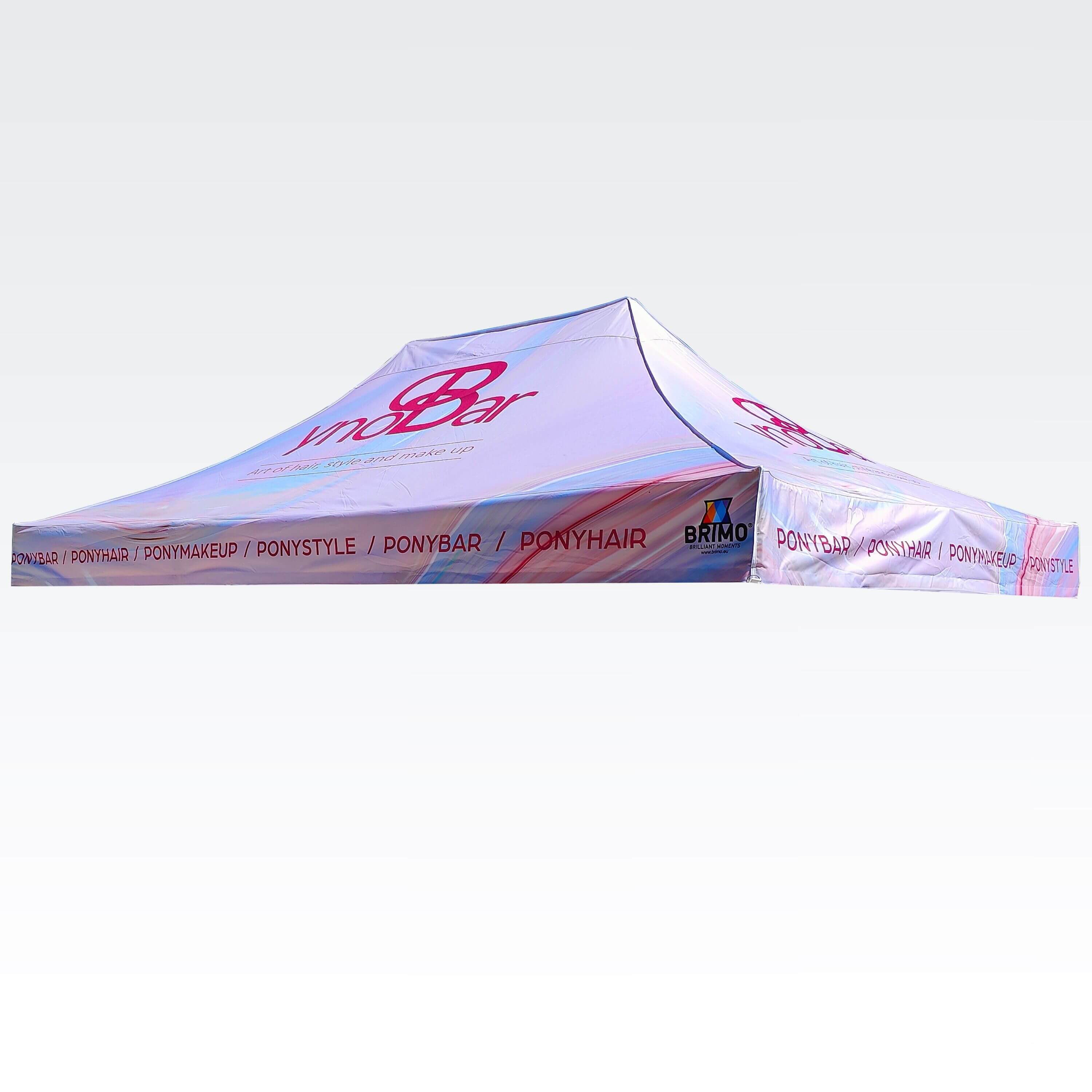 Whether it's a small 2x2 m tent or a large 4x8 m advertising tent, we print colorful images, graphic elements, or cover the entire surface of the advertising tent with the chosen design.