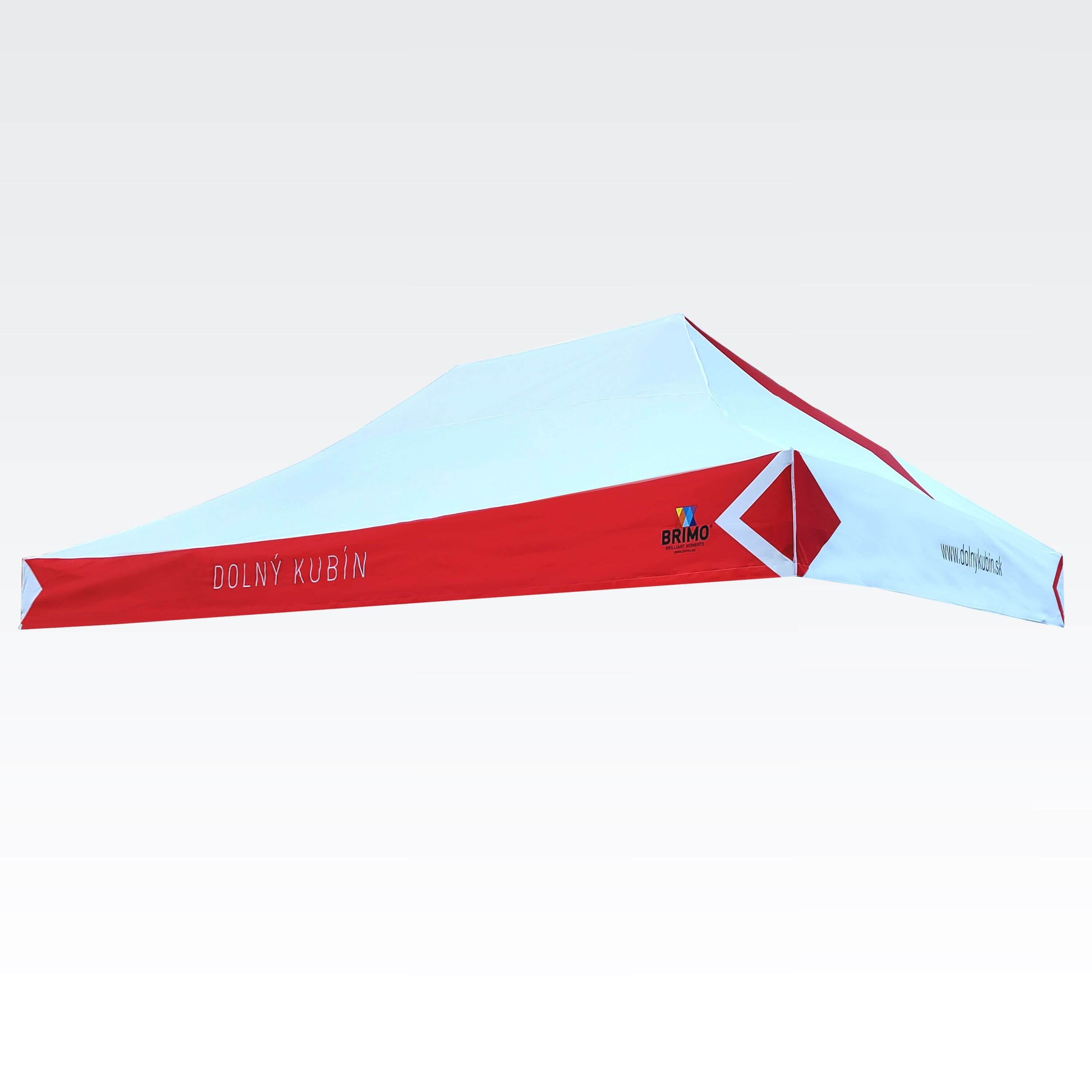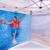 Advertising tents with digital sublimation printing. The printing is done through a chemical process where ink penetrates directly into the fabric's structure under high temperature. Logo, text, or any other type of graphic on the inside or outside of the tent as per the customer's wishes.