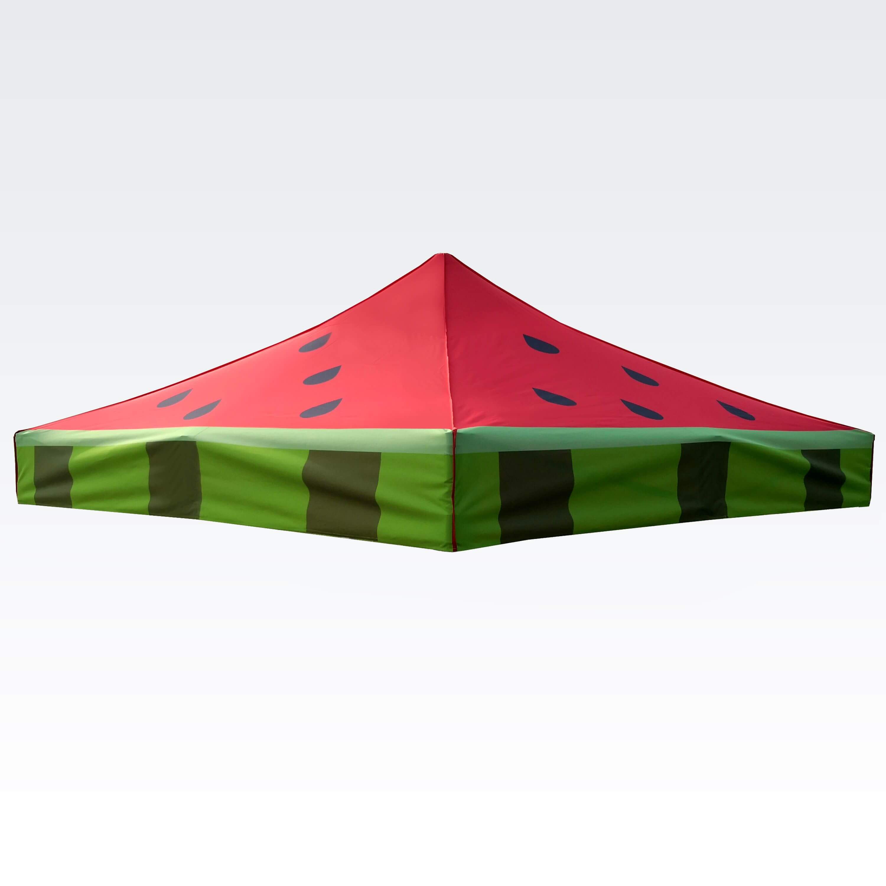 Advertising tents with digital sublimation printing. The printing is done through a chemical process where ink penetrates directly into the fabric's structure under high temperature. Logo, text, or any other type of graphic on the inside or outside of the tent as per the customer's wishes.
