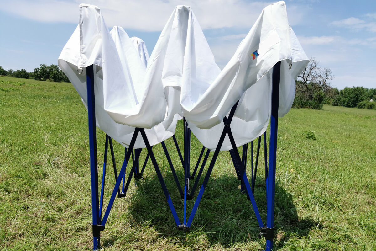 Screwed connections in the structure allow easy handling during assembly and disassembly. The automatic mechanism has gone through several changes before reaching its current form, which is unmatched and unique on the market. Patents for locking the legs are also exceptional. Securing the pavilion has never been easier.