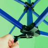 The automatic advertising pavilion can be used both outdoors and indoors. Never underestimate the importance of securing the pavilion. It must always be anchored in any weather. Stakes are included in the package. If placing the pavilion on a hard surface, steel weights or sandbags can be used for anchoring.