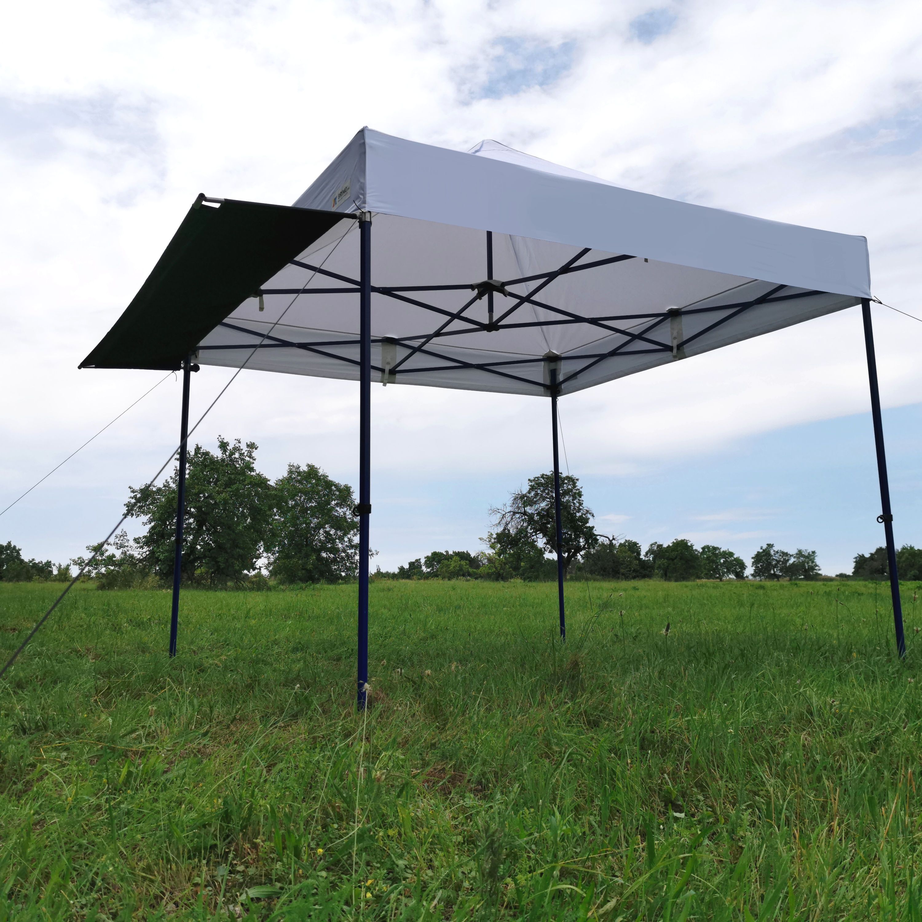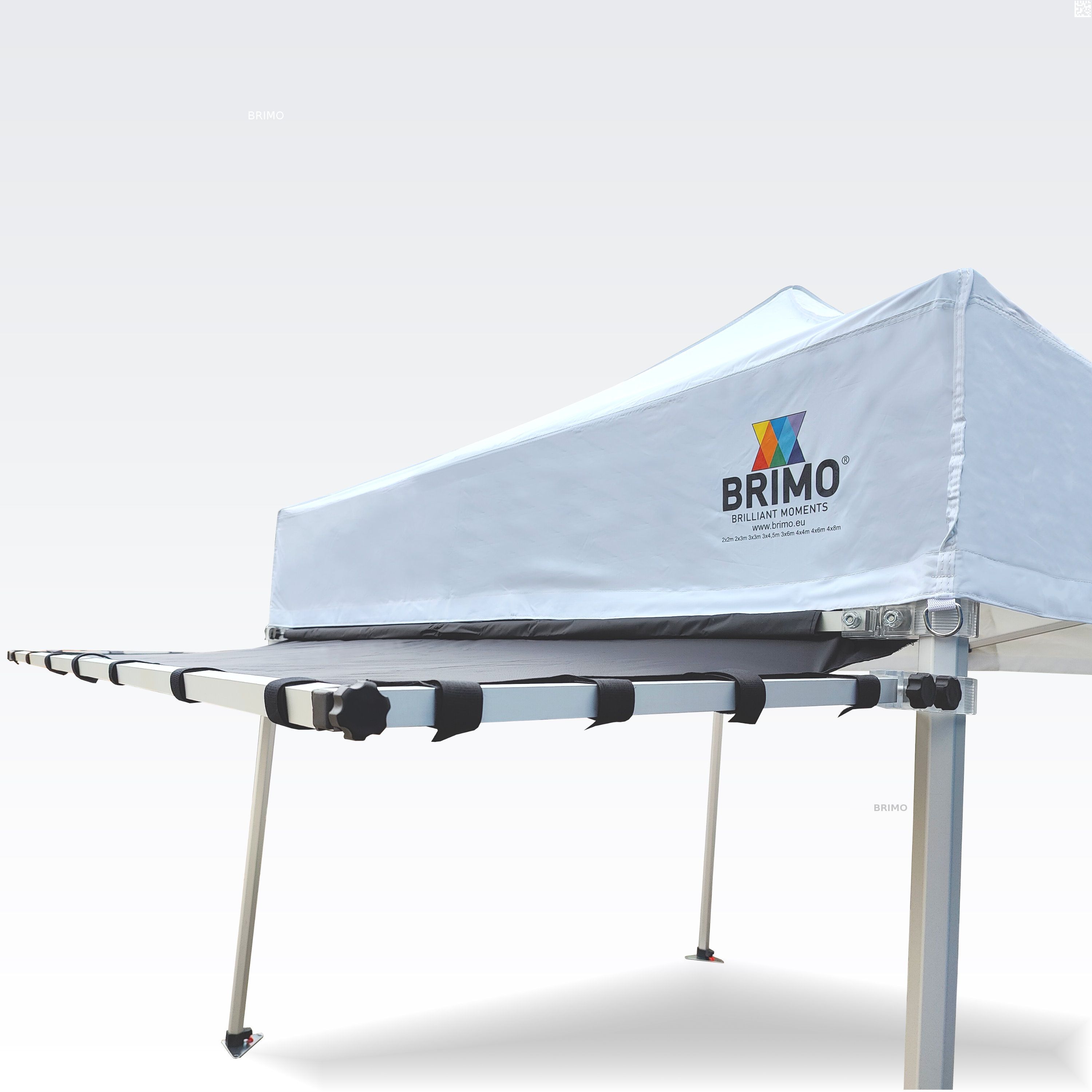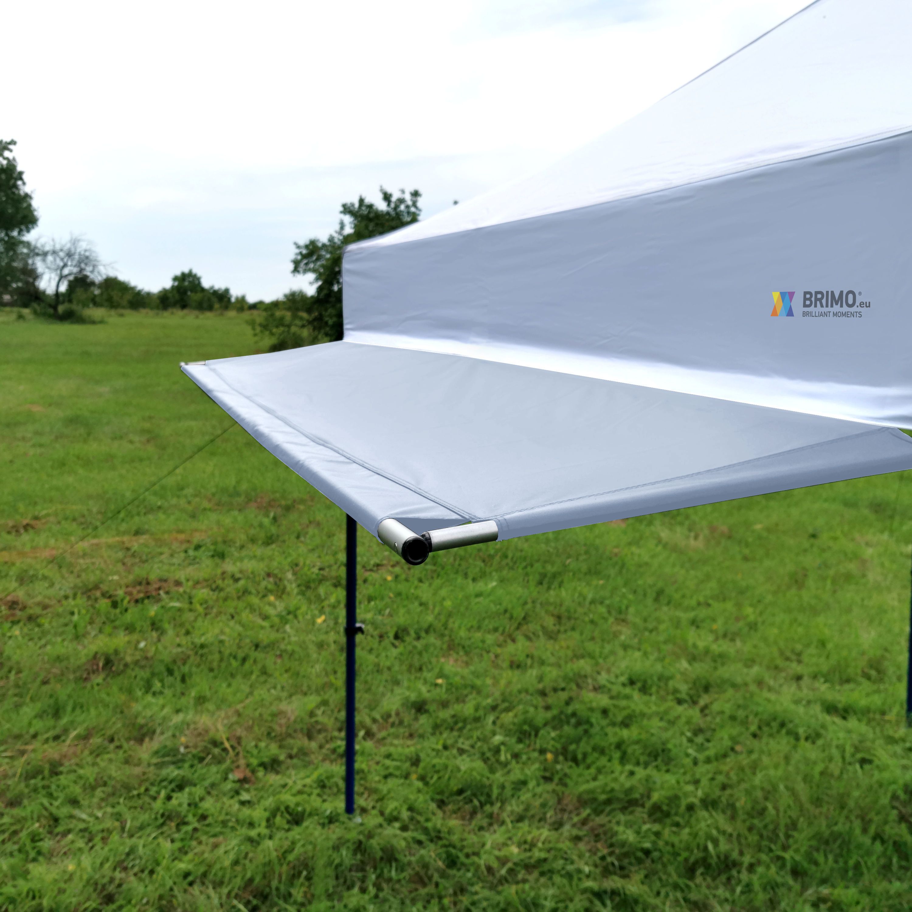 If waiting customers in front of the tent get wet or if strong sun shines on the goods, we have a solution for you.