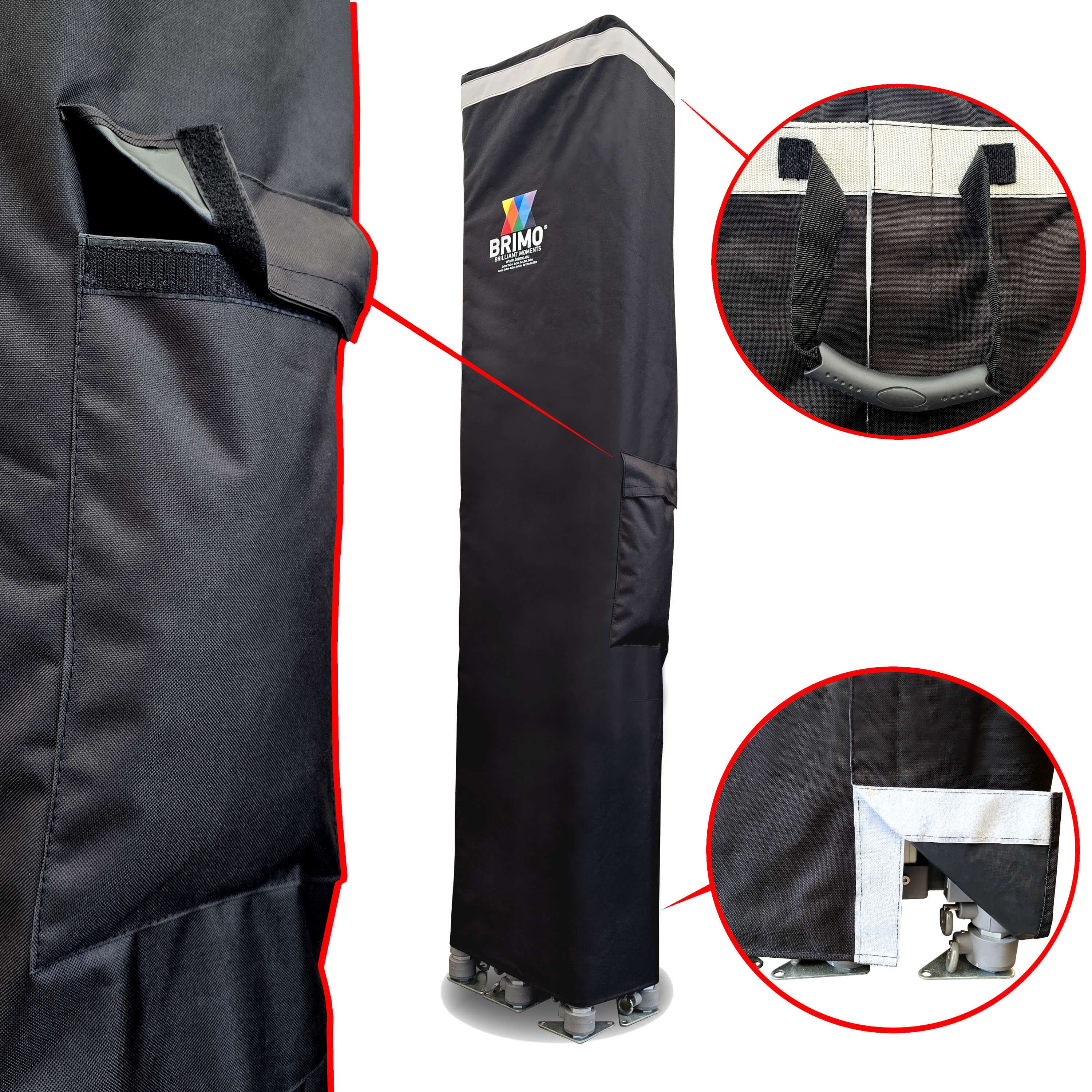 - Total height: Thanks to the impressive height of 310 to 340 cm, your gazebo will be unmissable even from a great distance. This guarantees great visibility for your presentation and logo at every event.