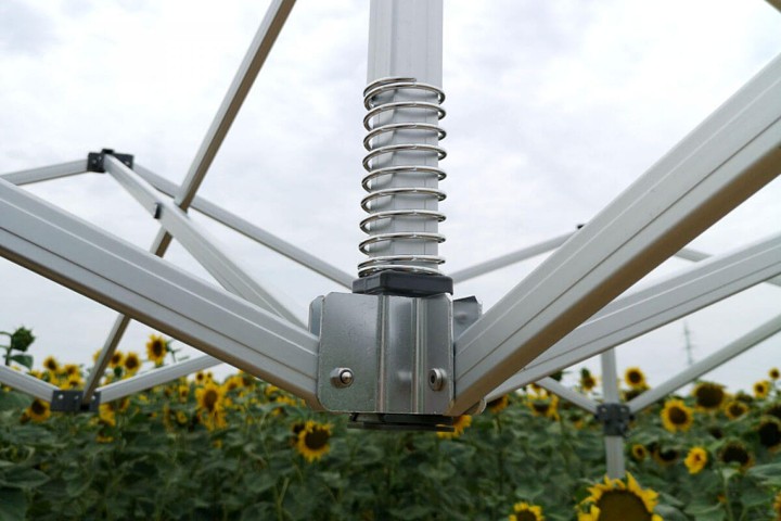 This quick-assembly tent is a true luxury item that represents your brand at every exhibition, market, or event. Thanks to the innovative scissor system and precise joints, you can set up the tent by yourself in just a few minutes. Every part of the aluminium profile is additionally reinforced for demanding professional use. Despite its high stability, the tent is surprisingly compact and fits comfortably into a car boot when folded.