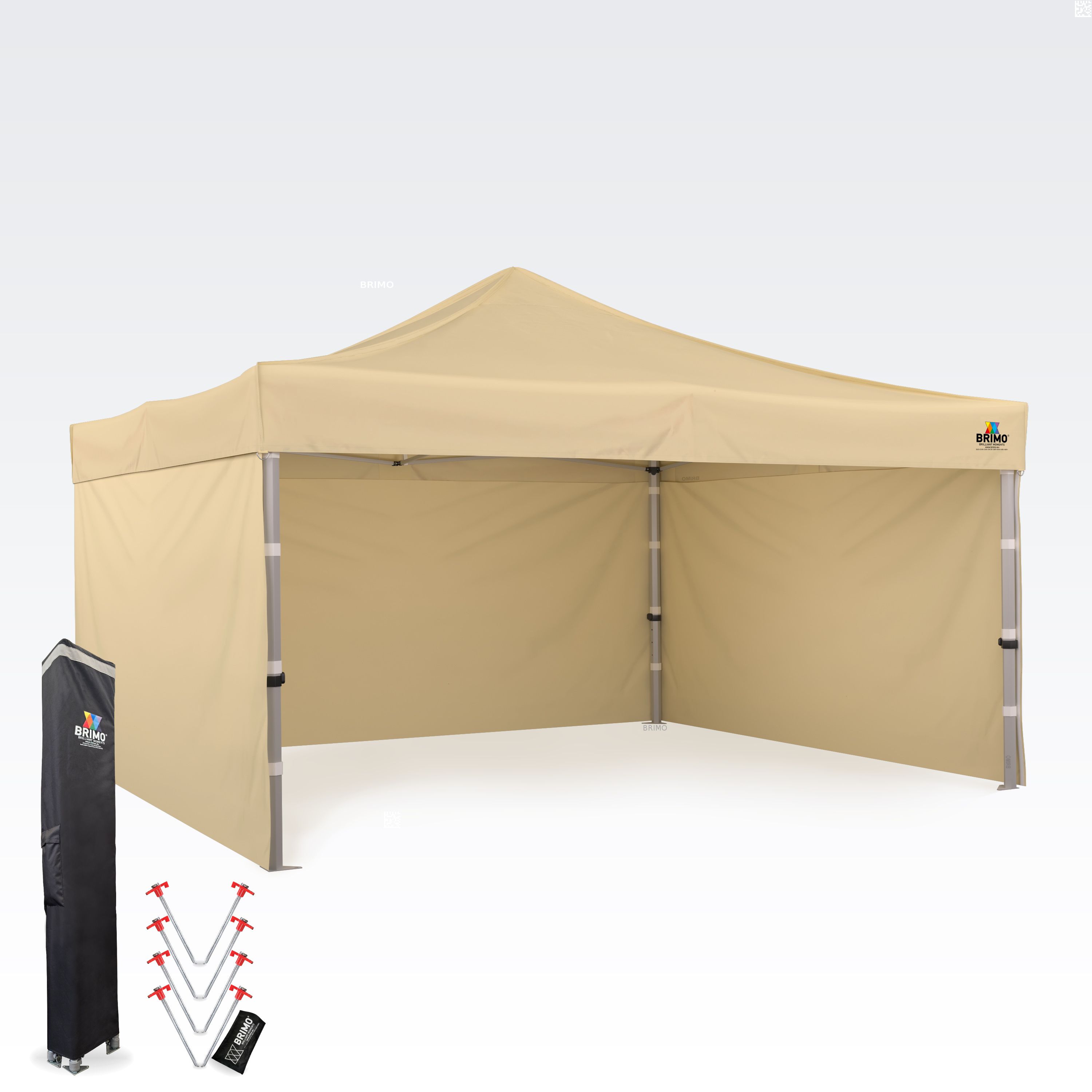 - Total height: Thanks to the impressive height of 355 to 395 cm, your gazebo will be unmissable even from a great distance. This guarantees great visibility for your presentation and logo at every event.