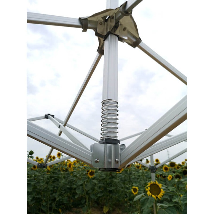 The core is an innovative scissor mechanism that ensures a trouble-free and lightning-fast marquee setup. When packed, the structure measures only 2 metres, which significantly simplifies logistics and transport. The frame utilizes massive hexagonal legs, making the whole unit extremely stable. However, keep in mind that thorough anchoring is crucial – for absolute safety, even the most massive models should always be reliably fixed to the ground.