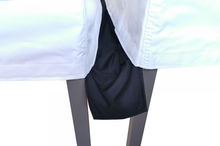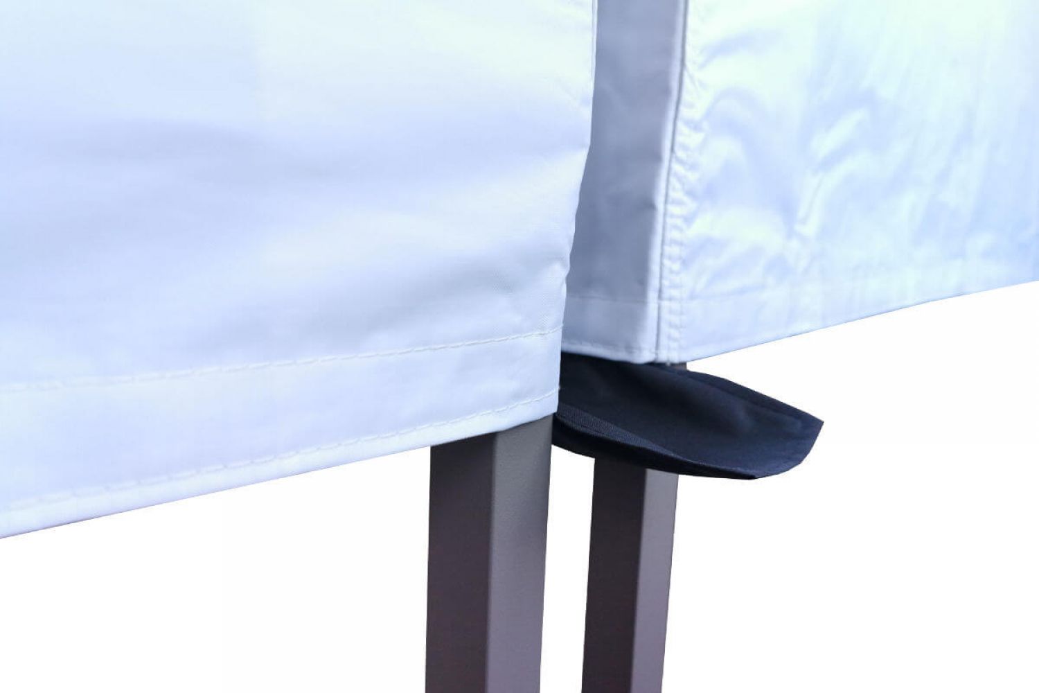 Installation is very easy. Simply attach the gutter with Velcro to the tent, which our tents have all around the roof.