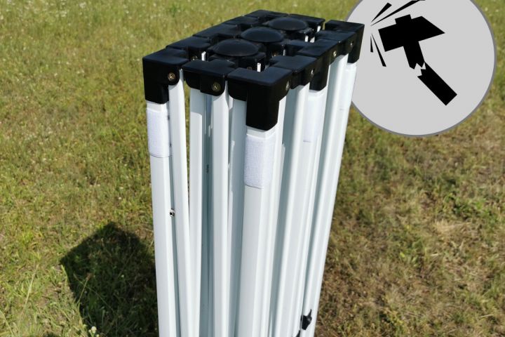- Wind Resistance: The super steel model can withstand winds up to 40 km/h. The legs of the structure are equipped with holes for firm anchoring. You will receive anchoring pins with the tent completely free of charge for your maximum safety.