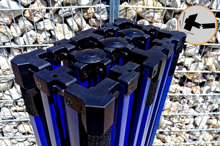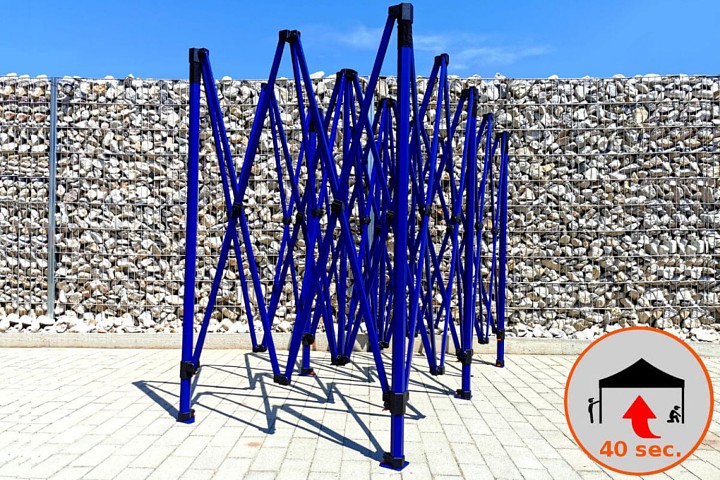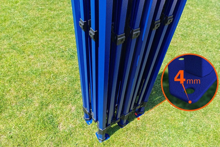The frame color is royal blue. This color gives the entire tent an exclusive look. It stands out from the competition, is new on the market, and is something everyone wants. Every entrepreneur wants to stand out, which is why we offer this exclusive tent with an unconventional frame color.