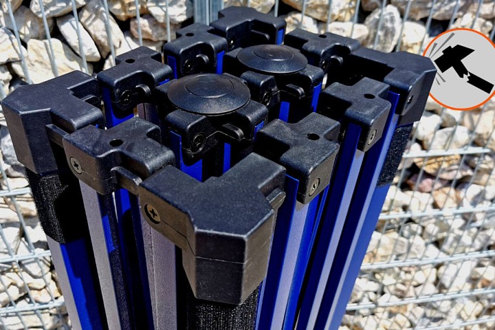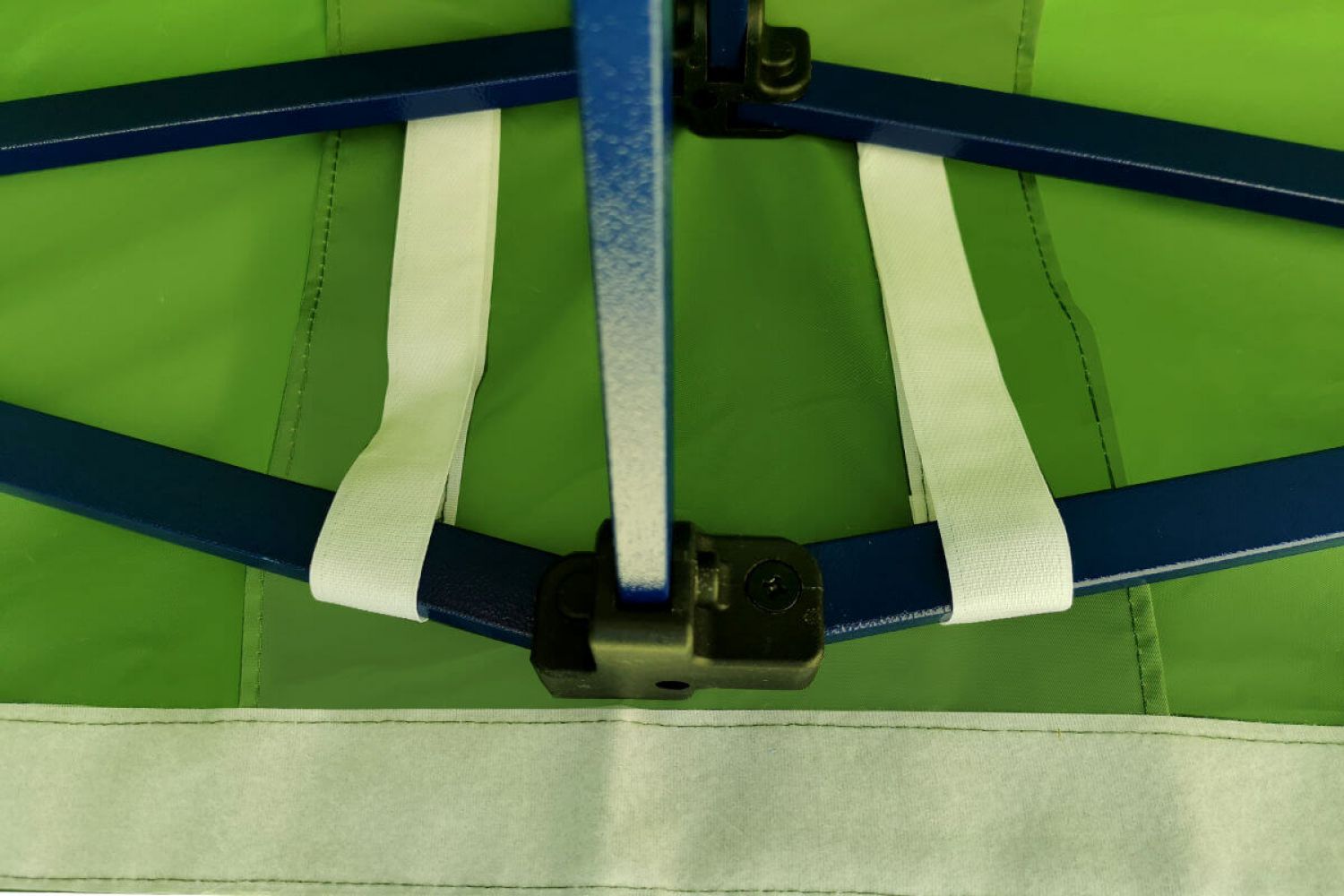 Our innovative system has qualitatively transformed our exhibition tents with print. The solid steel structure with reinforced internal walls and hexagonal legs ensures stability and extra scratch resistance. Internal walls are 1.1 mm thick.