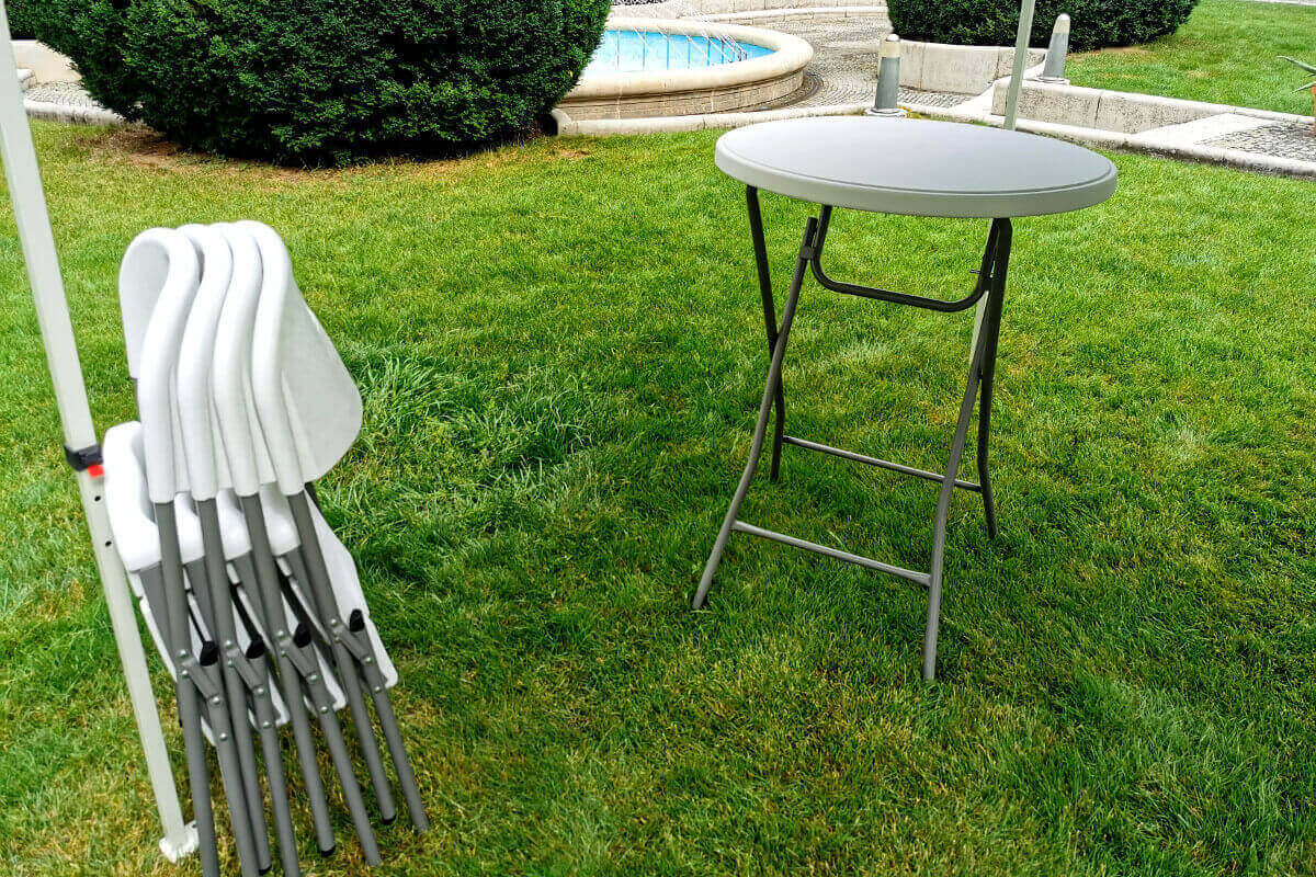 As we mentioned, the folding bistro table should not be missing from any formal or informal event. It elevates any space. Its use is versatile, even in winter. The table’s properties are not damaged by sub-zero temperatures. These tables are very popular at Christmas markets where visitors can enjoy traditional food. It serves as a place to consume food and drinks, but also to offer toasts. The table’s elegant design fits into any concept.