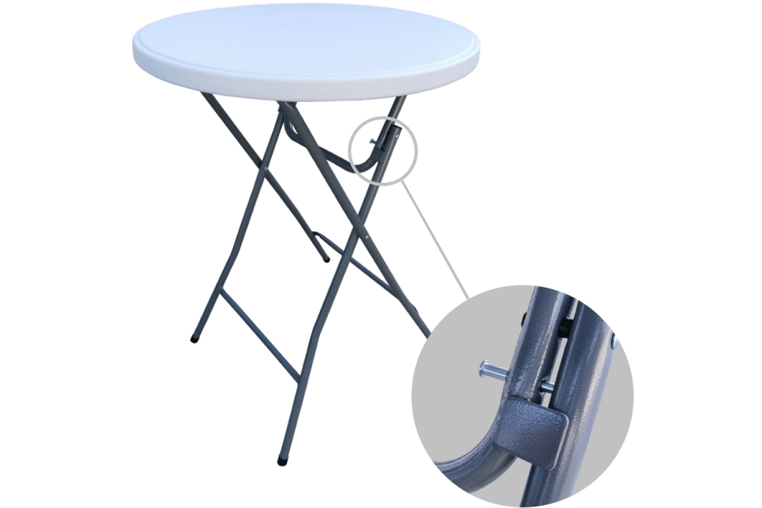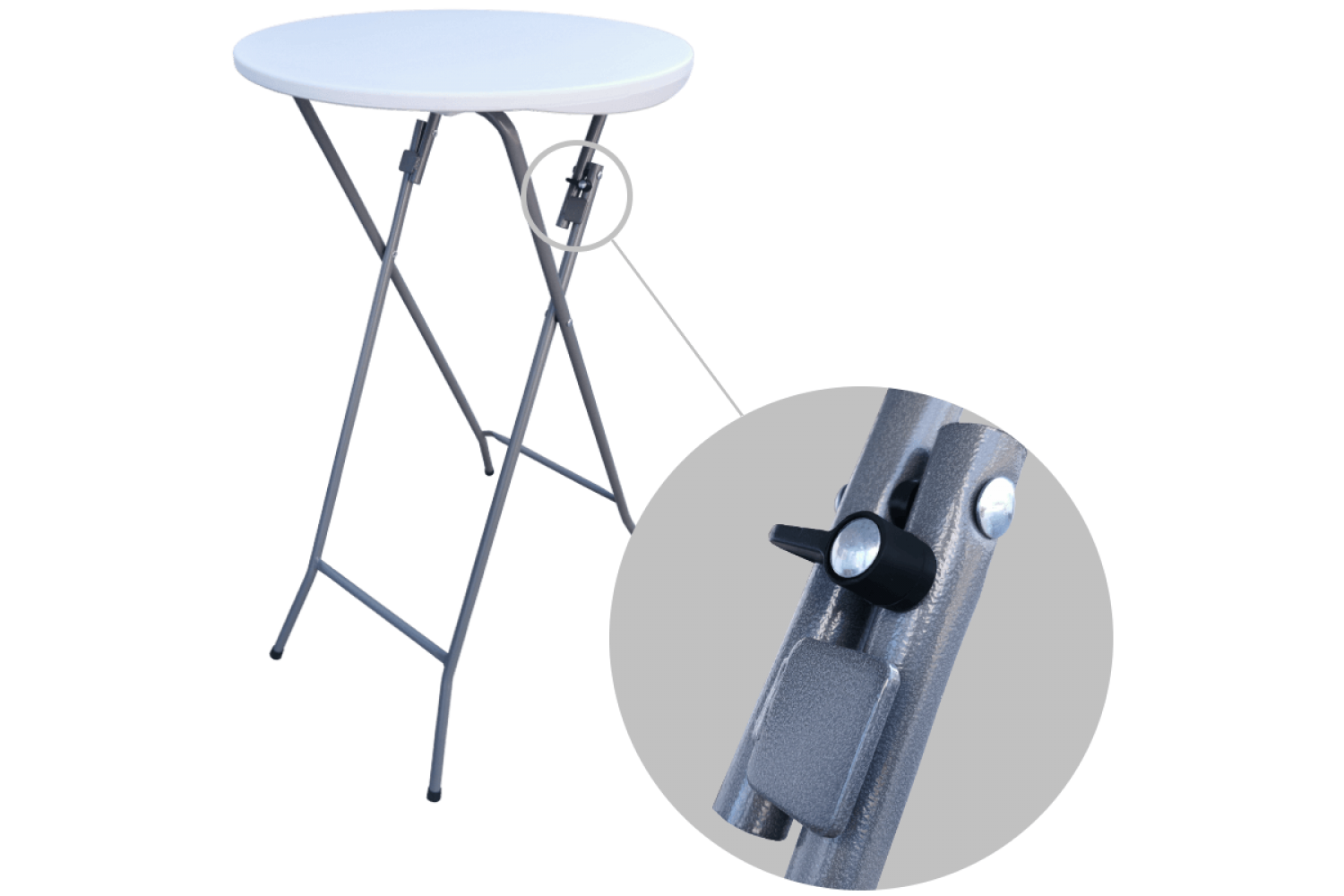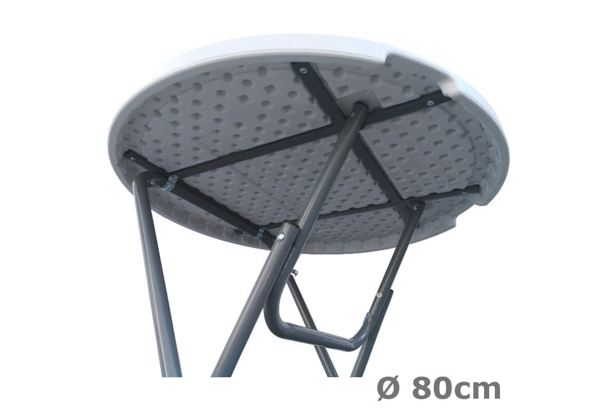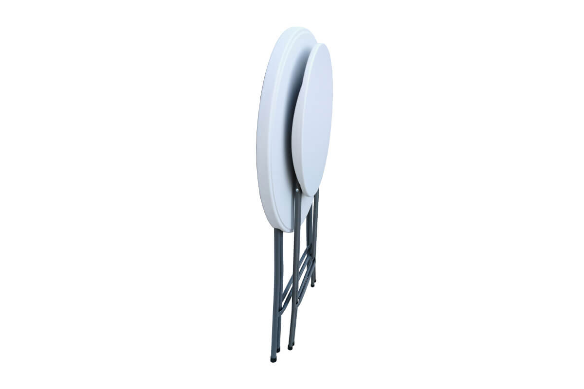 The foldable plastic bar table with a round top of 80cm / 60cm is made from very strong non-yellowing HDPE plastic. The key advantages of this folding bar table are its seconds-fast setup, great strength, and stability.
